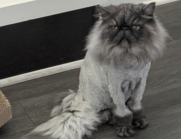 When his foster mom sits on the couch to watch some TV or read a book, he loves to snuggle with her, making him a wonderful, soft and warm lap companion. Bergie came in very matted. His foster mom noticed that he didn’t appreciate being brushed, probably because the tight mats were hurting him, so we had him shaved under sedation. He is now sporting a fashionable lion cut, making him look like an adorable mini lion. His foster mom finds him to be an easy going, chill, and non-intrusive little cat.