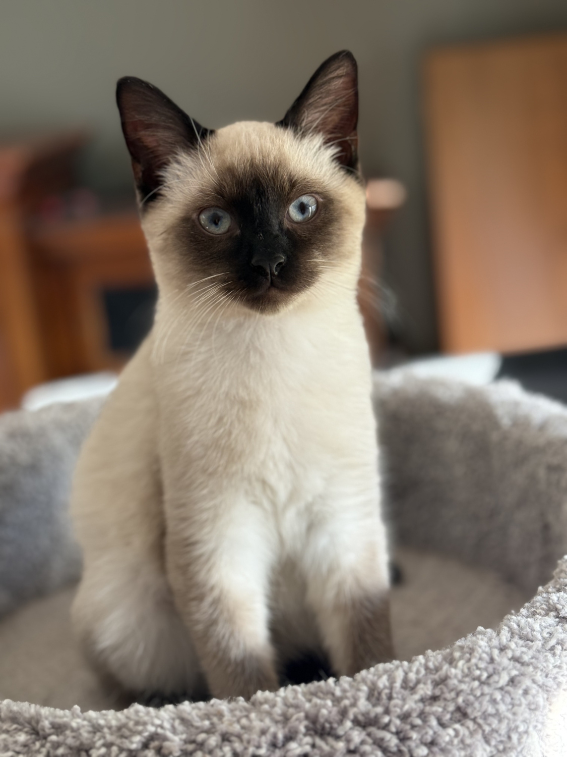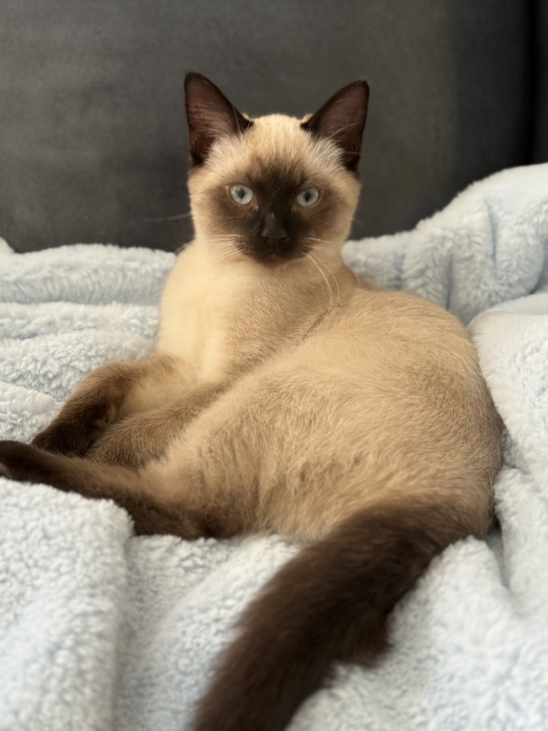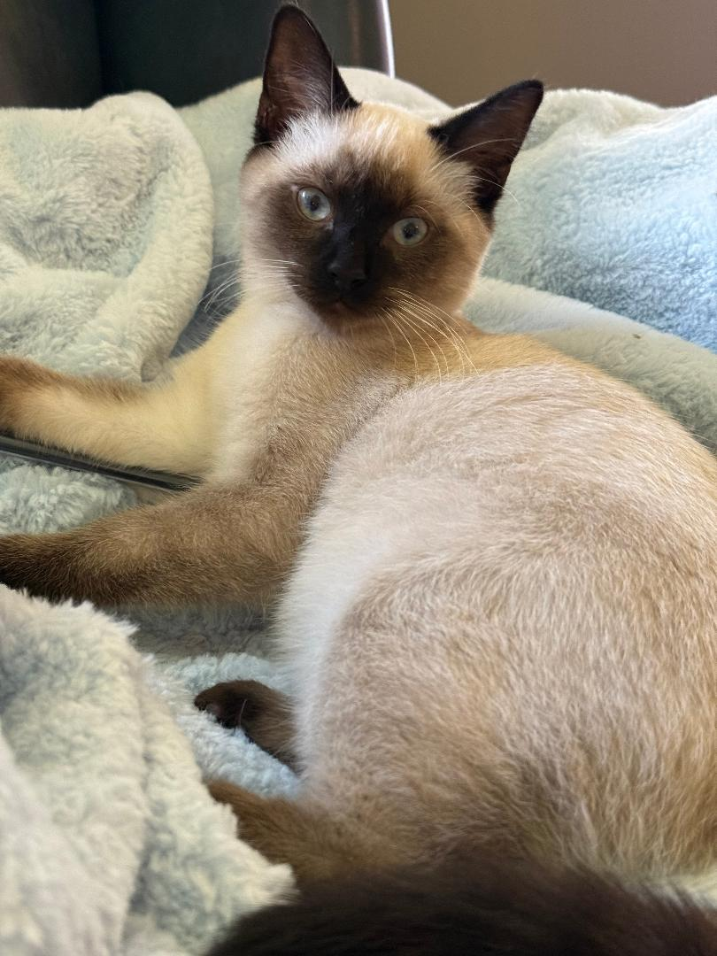 BILLY is a fun loving and outgoing 4 month old SEAL POINT SIAMESE. He has all his claws, has been neutered, microchipped, FIV/FELV negative and fully vaccinated. Billy is a handsome boy with blue eyes and a dark brown mask.
