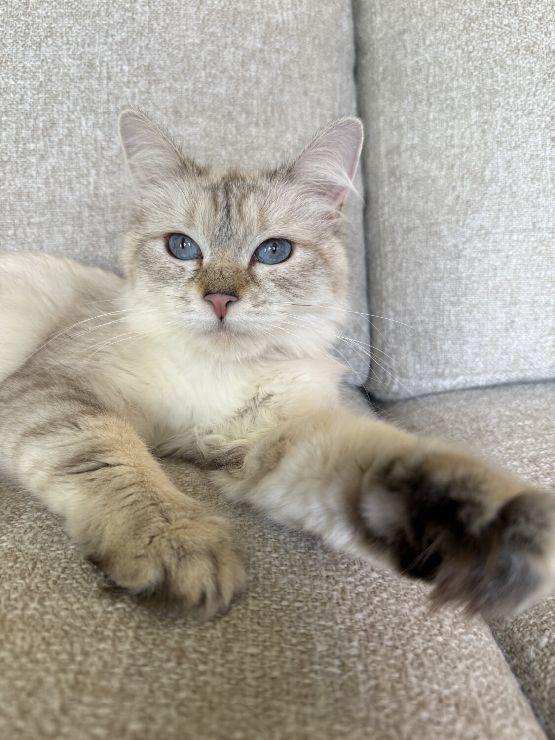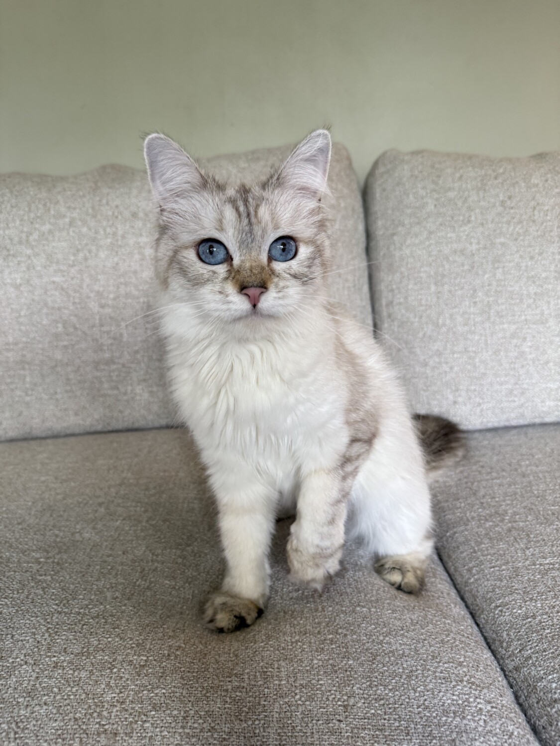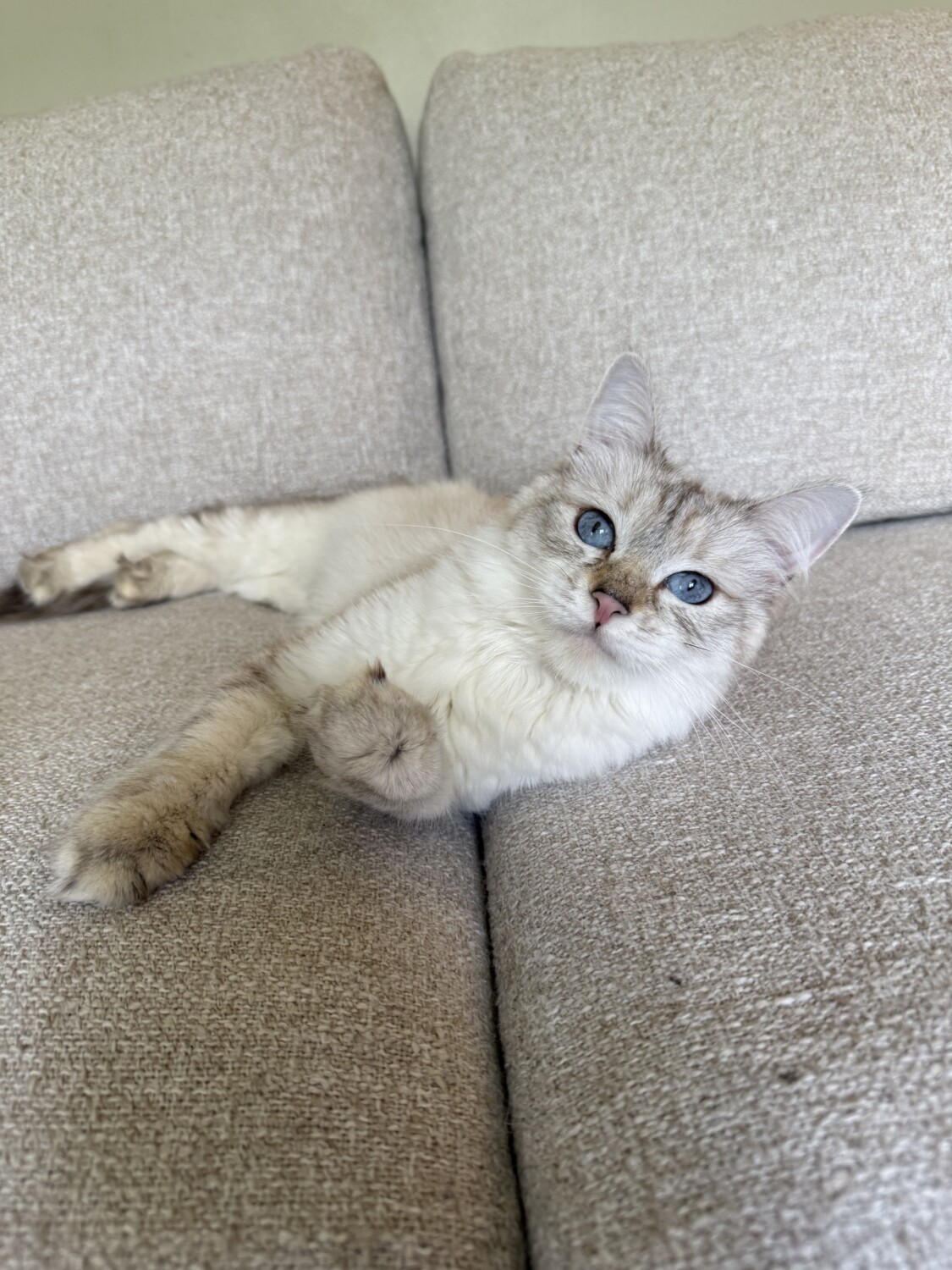 CLAIRE is a pretty and sweet 2 year old LYNX POINT RAGDOLL. She is 4 paw declawed, spayed, microchipped, FIV/FeLV negative and full vaccinated. Claire has lovely blue eyes and a long coat that will fill in more as she ages.