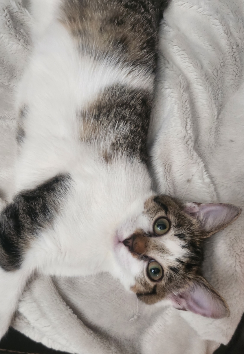 Gidget absolutely LOVES people! She follows her foster mom around and “helps” with any activity that she can. She is very friendly and social, she doesn’t want to miss out on anything going on around the house. Being a kitten she also loves to play! Gidget enjoys wand toys, the laser pointer, spring toys, balls etc. Really, she likes playing with anything she can find.
