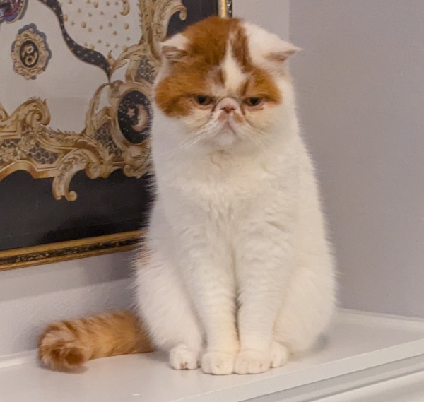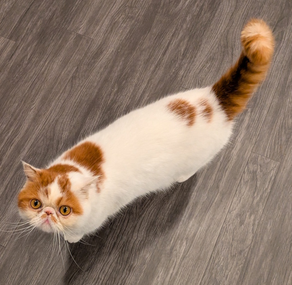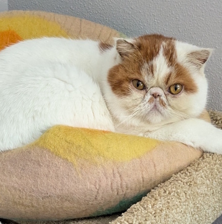 GIZMO is an adorable ORANGE AND WHITE EXOTIC SHORTHAIR with copper eyes. He is 5 years old, neutered, has his claws, is up to date on vaccinations, and microchipped. He weighs around 10 lbs.