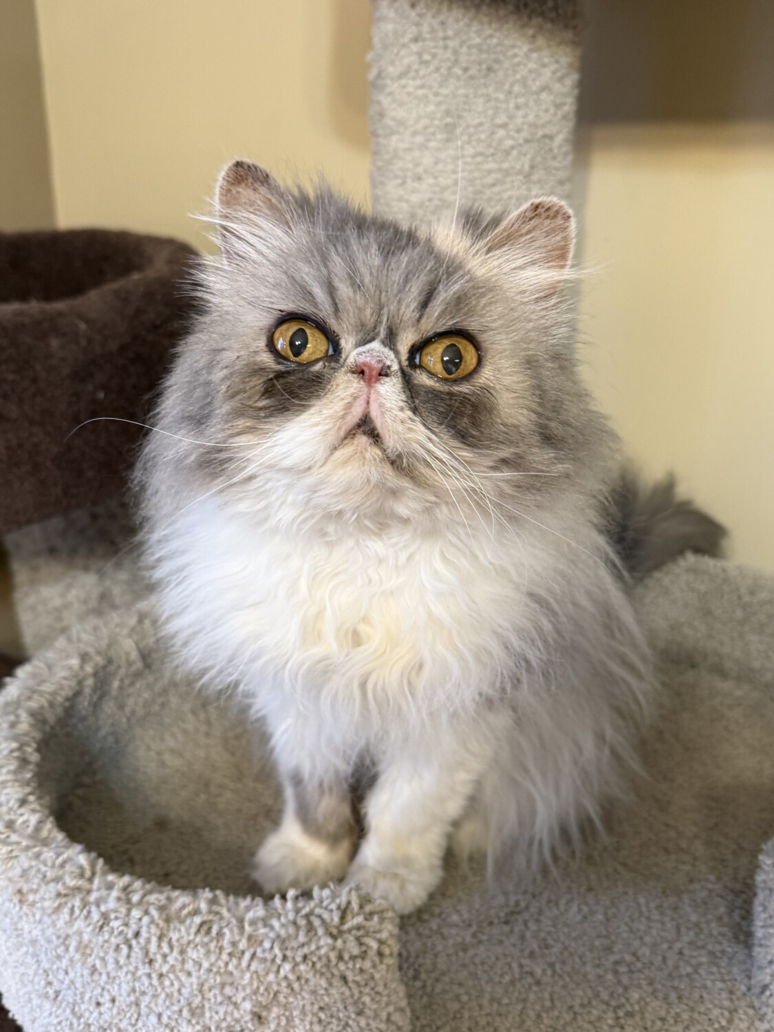 PRISCILLA is a lovely petite 8 year old DILUTE CALICO PERSIAN. She has all her claws, is spayed, FIV/FeLV negative, microchipped and fully vaccinated. She has big round copper eyes and a pretty dilute calico coat.